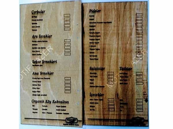 Kaşık, doğrama tahtası, kartvizit, kutu, menü, kapak, tabak, kütük, mobilya, sandalye, MDF, kontrplak gibi her türlü ahşaba lazer yakma işi yapıyoruz.
